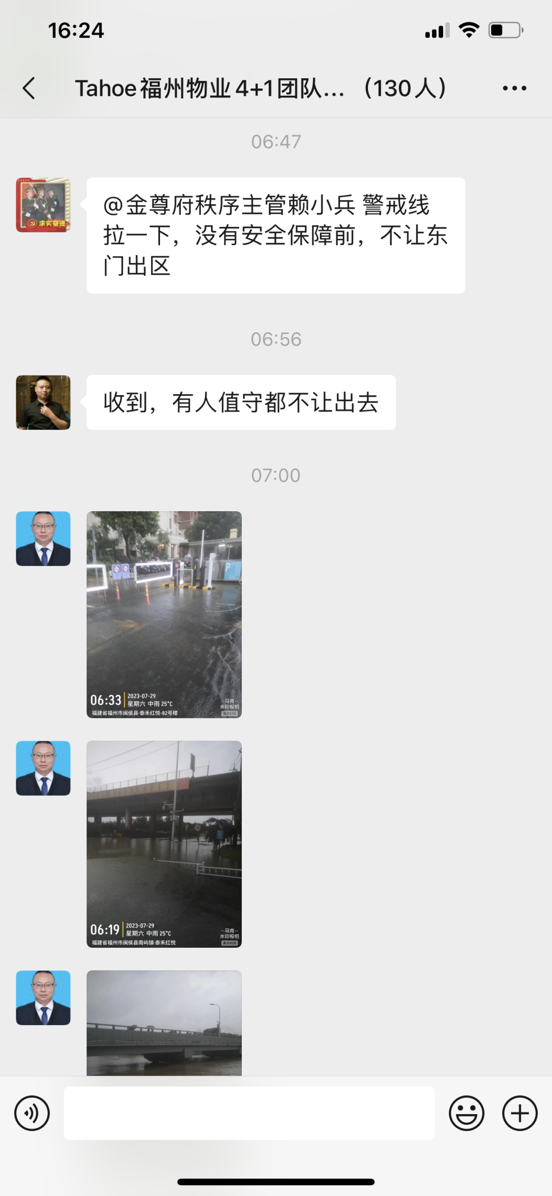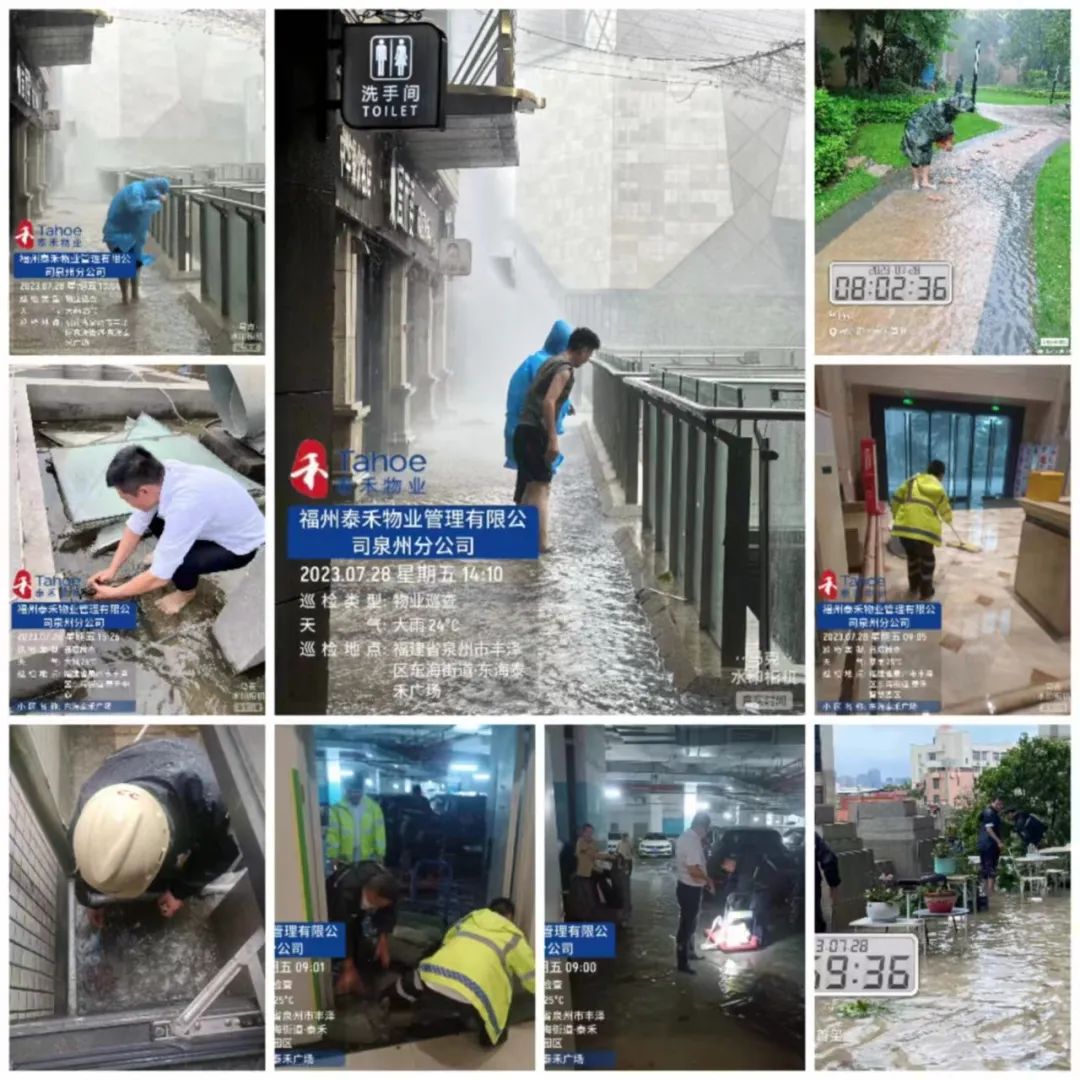 和记娱乐物业人已持续48小时在岗,福州区域领导深入抗台防汛第一线,时刻关注汛情情况,坐阵指挥防台抗台工作。